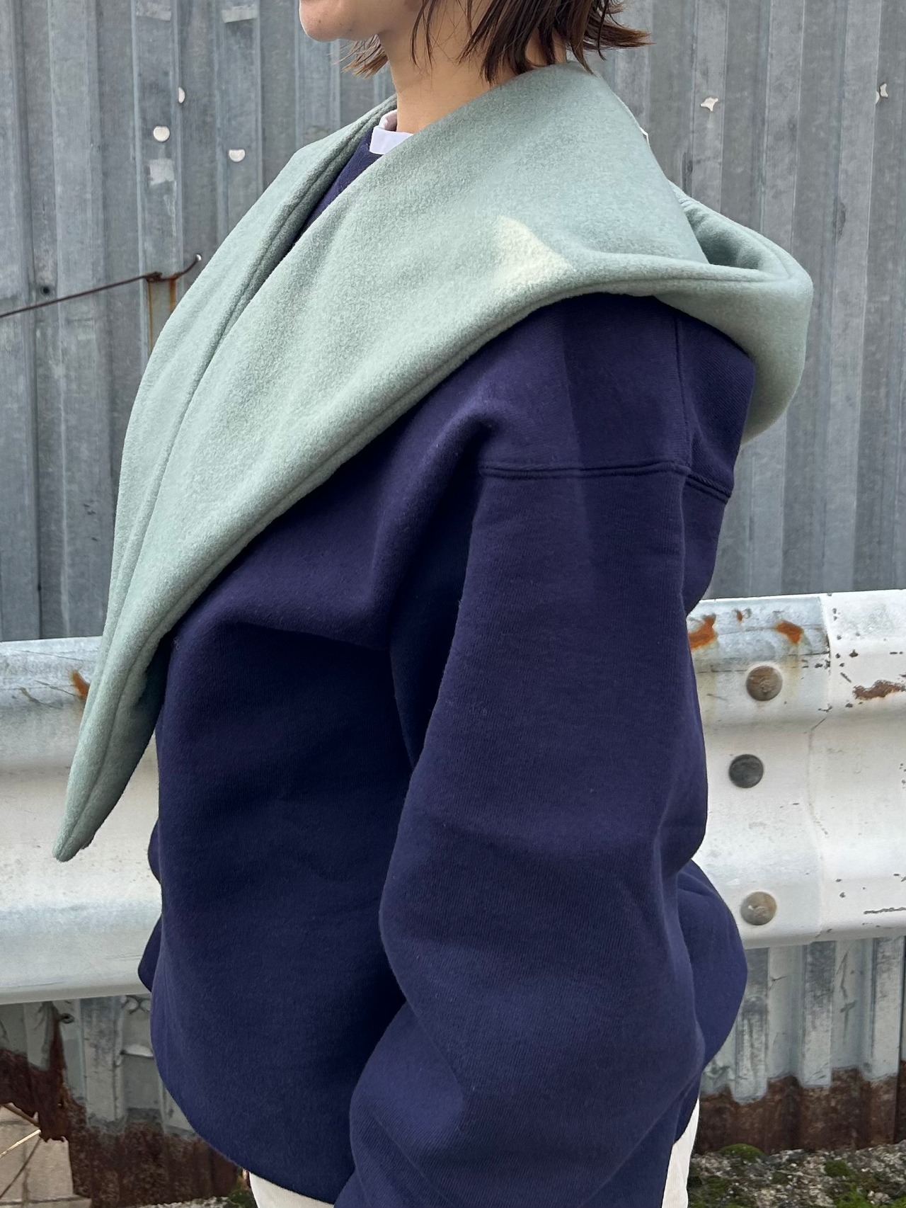 ノーカラーコートで寒い首元もこれがあればあったか