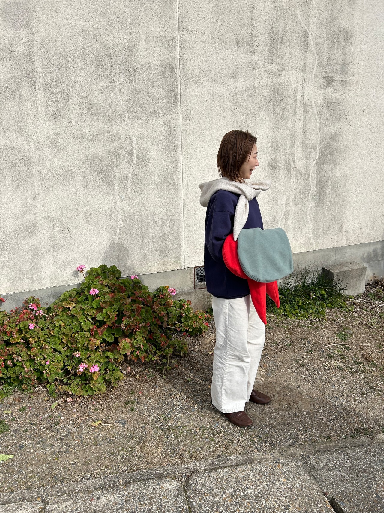 オフホワイトは肌触りの良いウール混の冬のパイル地